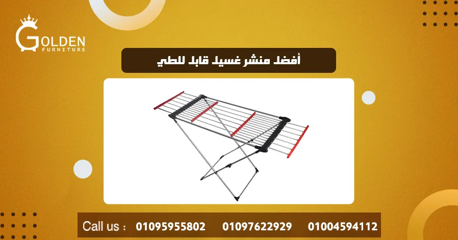 احصل على أفضل منشر غسيل قابل للطي من جولدن فرنتشر، تصميم عملي وموفر للمساحة، مثالي للشقق والمنازل، تواصل معنا الآن عبر فيسبوك أو واتساب.