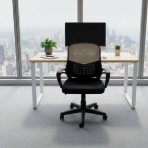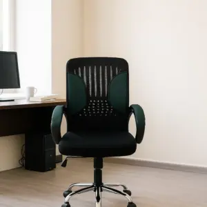 كرسي مكتب طبي بدعم قطني – مريح للظهر، شبك تهوية، دوران 360 موديل دبى