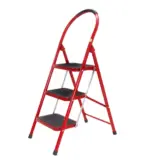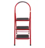 - هذا سلم معدني قابل للطي من 3 درجات من هايل ستيل (Hail Steel) باللون الأحمر.