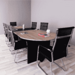 طاولة اجتماعات بيضاوية الشكل، مصممة بأسلوب عصري وعملي، وتُعد مناسبة للمساحات المكتبية المختلفة، سواء كانت غرف اجتماعات رسمية أو مساحات تعاون.