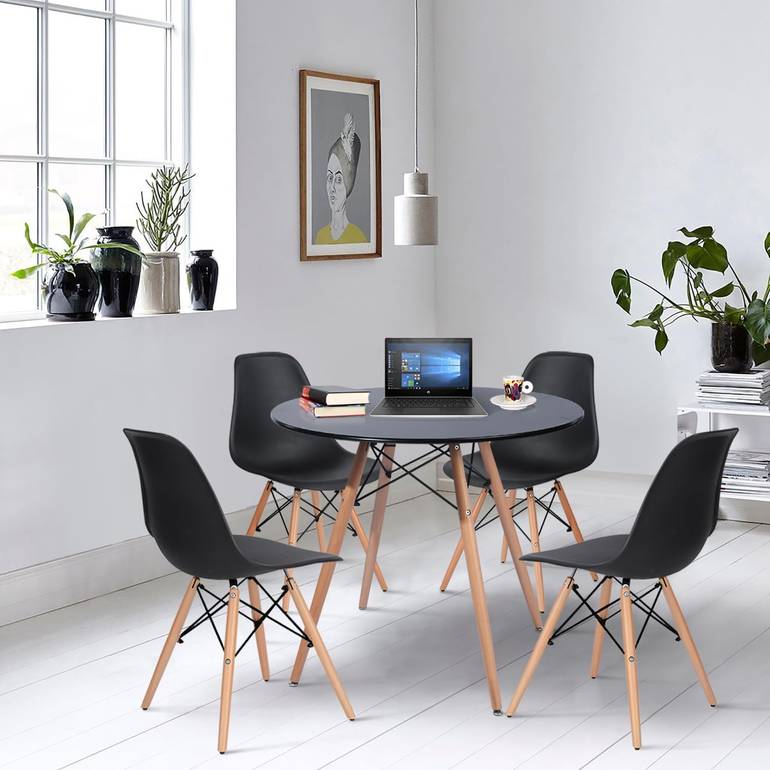 ترابيزة قرص MDF بأرجل خشب زان وشاسيه حديد GLHT 002