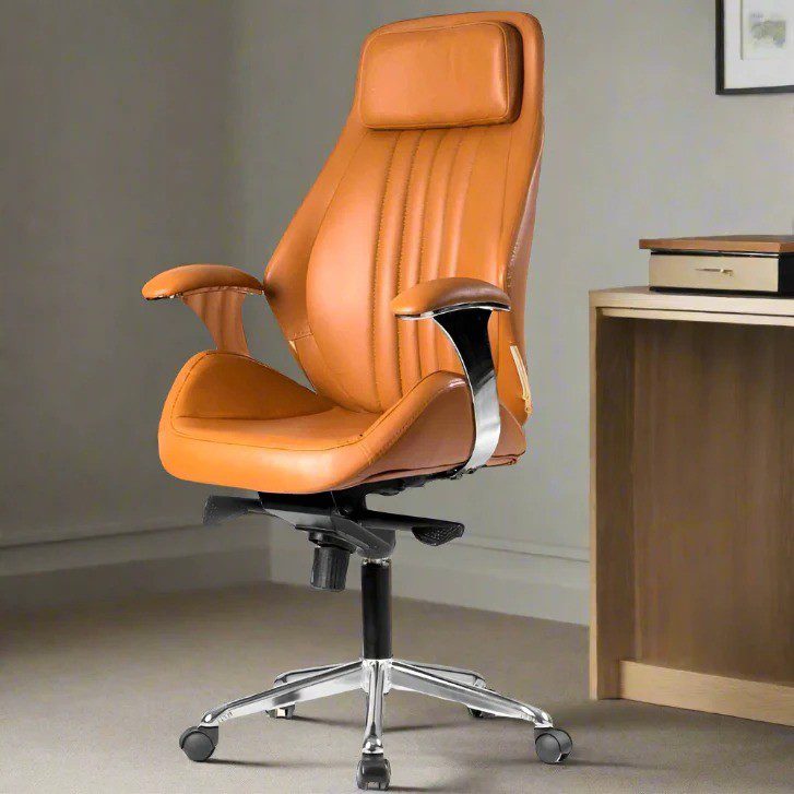 كرسي مدير جلد بشاسية قوي من الحديد يضمن المتانة والاستدامة.