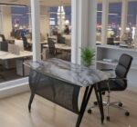 وبفضل شفافية السطح، تنعكس الإضاءة الطبيعية أو الصناعية بطريقة ناعمة تمنح المكتب رونقًا خاصًا طوال ساعات النهار، ليكون جزءًا من الهوية البصرية لمكان عملك.
