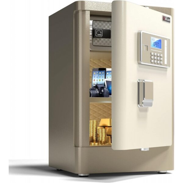 * تحتوي الخزنه علي جهاز بطاريات خارجيه يساعد علي فتح الخزينه في حاله نفاذ البطاريات الداخليه. الخزينه مزوده