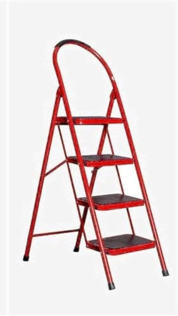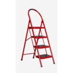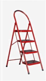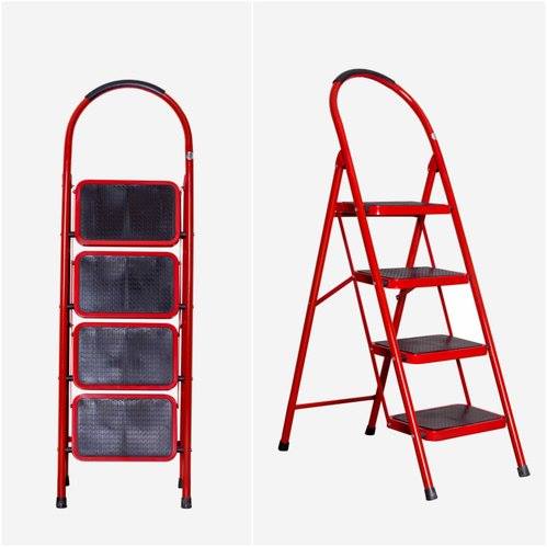 - هذا سلم معدني قابل للطي من 4 درجات من هايل ستيل (Hail Steel) باللون الأحمر.