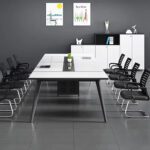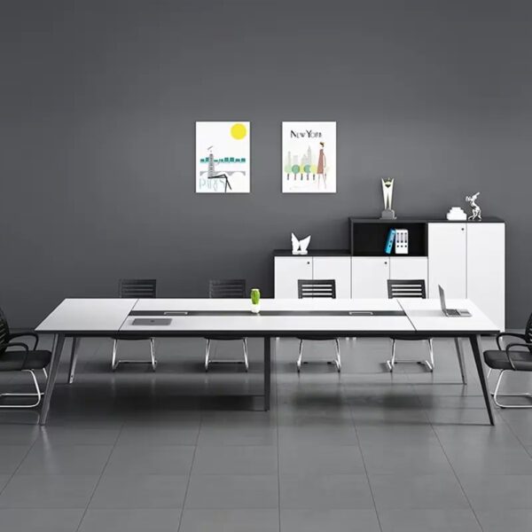 أضف لمسة من الأناقة والتنظيم إلى شركتك ومقر عملك طاولة اجتماعات خشب MDF قشرة ملامين مع هذا التصميم العصري الفاخر. تتميز الطاولة بخامات عالية الجودة وتفاصيل مميزة تمنحك تجربة استخدام مريحة وفعّالة.