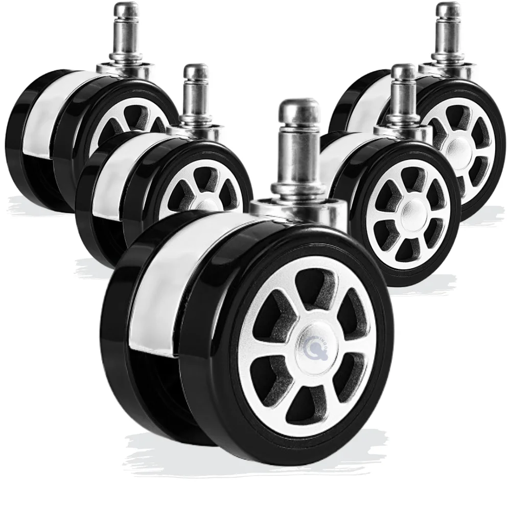 مجموعة عجلات كراسي المكتب هي الإضافة المثالية لأي مكتب، تجمع بين المرونة والتصميم الأنيق لتعزيز راحة الاستخدام. تم تصنيعها من مواد عالية الجودة لضمان المتانة وطول العمر، مما يجعلها مناسبة للاستخدام اليومي. بفضل لمساتها اللامعة والمصقولة، تضيف هذه المجموعة لمسة جمالية لأي مكان.