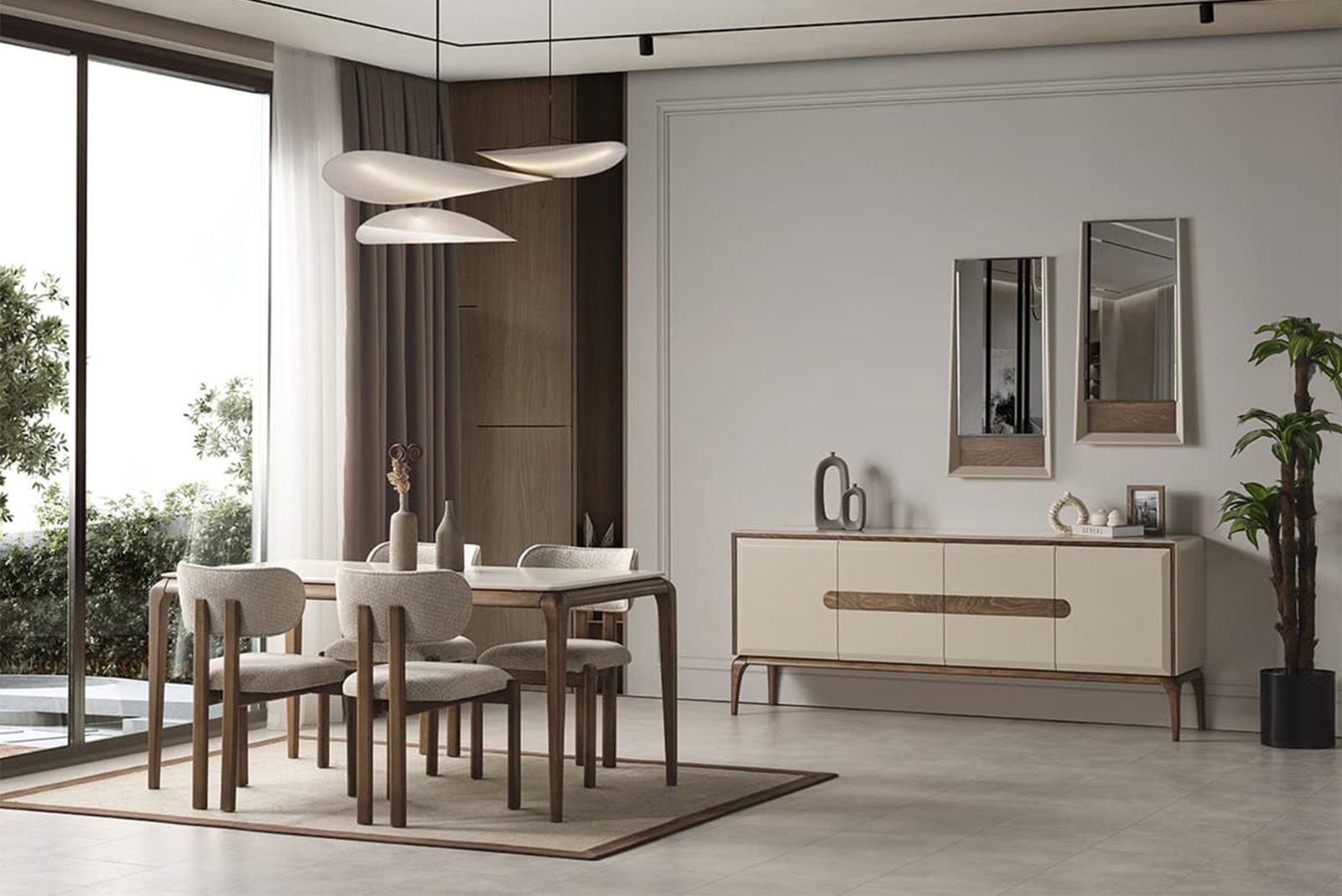سفره خشب طبيعي مكونة من ( سفرة مع 6 كراسي + بوفية )