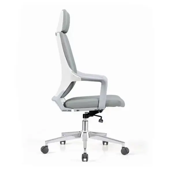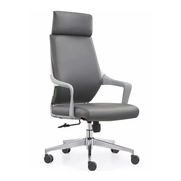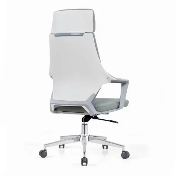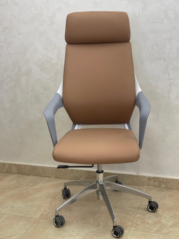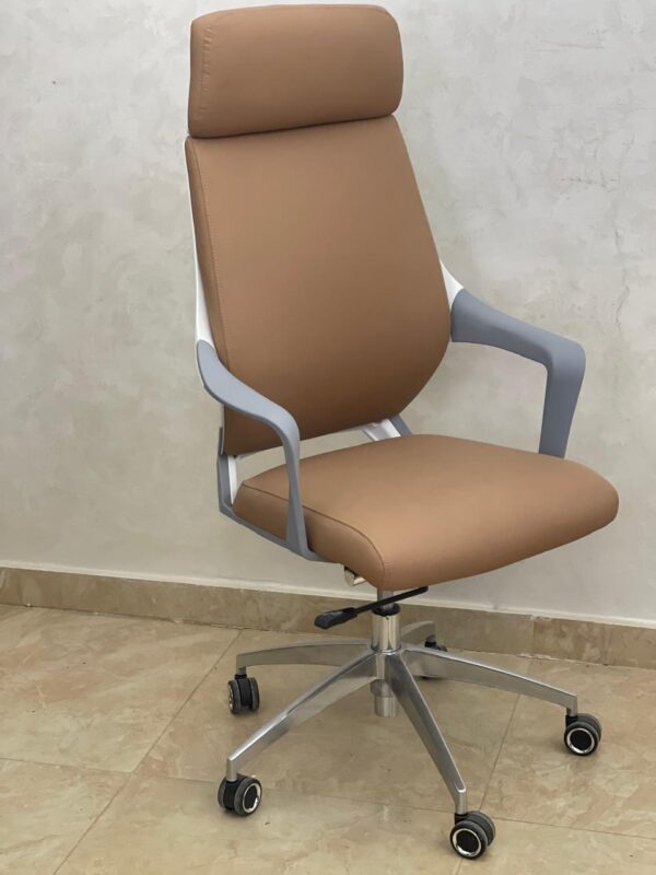 كرسي مكتب بتصميم مريح وعصري، مع لمسات معدنية فضية في القاعدة، مما يعكس مظهرًا احترافيًا وأنيقًا ومناسبًا لبيئات العمل المتنوعة والمكاتب المنزلية. يبدو الكرسي مصممًا بعناية لتوفير دعم ممتاز وراحة فائقة للمستخدمين خلال ساعات الجلوس الطويلة.