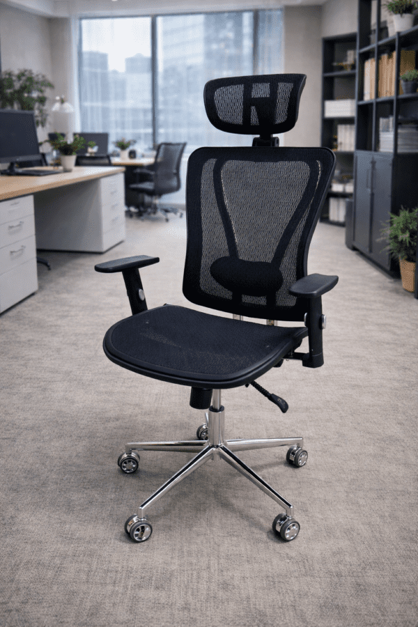 هل تقضي ساعات طويلة بالعمل أو بالدراسة وتبحث عن كرسي مريح ، صممنا لك كرسي مكتبي بتصميم عملي ومريح صنع من خامات مريحة لا تتأثر بالعوامل الخارجية، كما توفر التهوية الصحية للجسم.