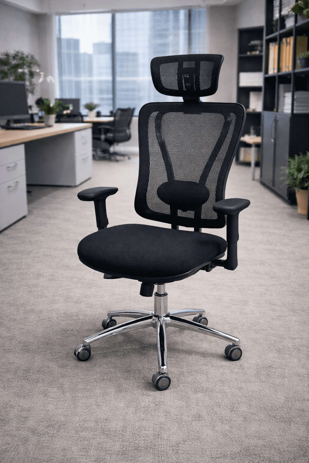 هل تقضي ساعات طويلة بالعمل أو بالدراسة وتبحث عن كرسي مريح ، صممنا لك كرسي مكتبي بتصميم عملي ومريح صنع من خامات مريحة لا تتأثر بالعوامل الخارجية، كما توفر التهوية الصحية للجسم.