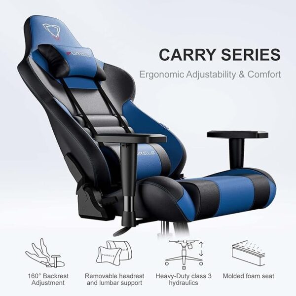 استمتع بتجربة ألعاب لا مثيل لها مع كرسي ألعاب وكمبيوتر جيمنج GLGM 109 الذي يجمع بين التصميم العصري والأداء العالي يأتي هذا الكرسي بتصميم أنيق باللونين الأزرق والأسود مما يضيف لمسة جمالية على أي مساحة عمل أو غرفة ألعاب ومصنوع من جلد عالي الجودة ويوفر الكرسي راحة استثنائية ودعم ممتاز للظهر مما يجعلها مثالي لجلسات اللعب الطويل أو العمل المكثف كما يتميز بآليه هزاز مريحة