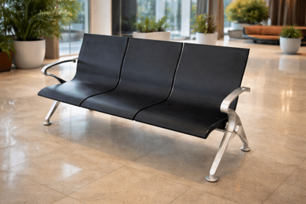 كنبة عملية، متينة، ومناسبة للأماكن العامة مثل صالات الانتظار، المستشفيات، البنوك، والمطارات، مع تركيز واضح على التحمل وسهولة الصيانة أكثر من التنجيد الفاخر.