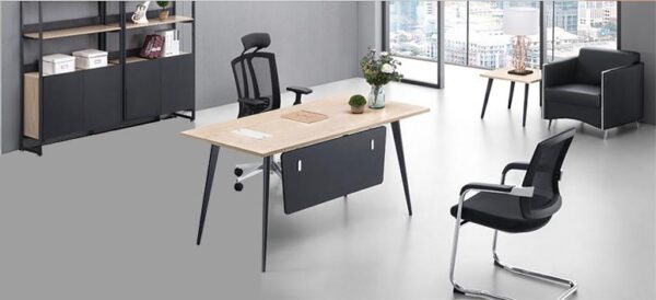 تصميم أنيق، انسيابي، يجمع بين صفاء الخشب وصلابة المعدن، ليمنحك مكتبًا يليق بمكانتك ، ويعكس ذوقك الرفيع في أدق التفاصيل.