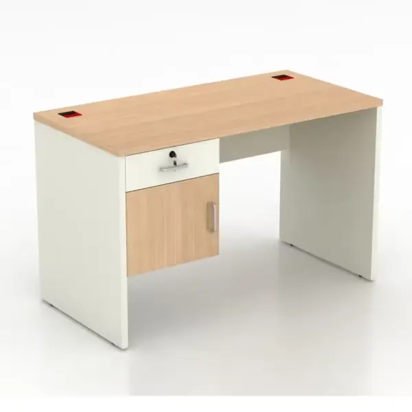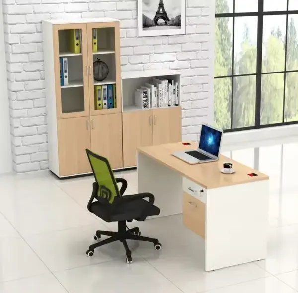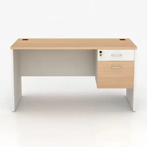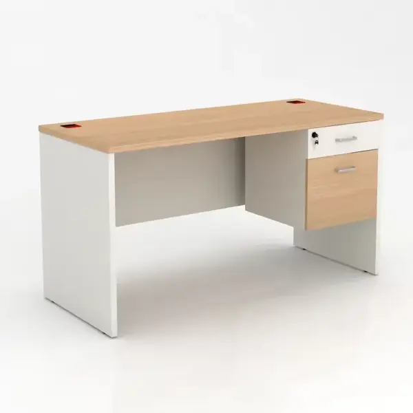 مكتب موظف من إنتاج جولدن فرنتشر ، مصنوع من خشب MDF اسباني عالي الجودة، يجمع بين الأناقة والمتانة. يتميز بتصميم عصري وخطوط نظيفة، مع سطح واسع يوفر مساحة كافية للأجهزة المكتبية والأوراق. يحتوي على أدراج مدمجة بمقابض معدنية سلسة لتخزين المستندات والأغراض الشخصية. هذا المكتب الأنيق يضفي لمسة احترافية على أي بيئة عمل ويعزز الإنتاجية بتصميمه العملي والجذاب.