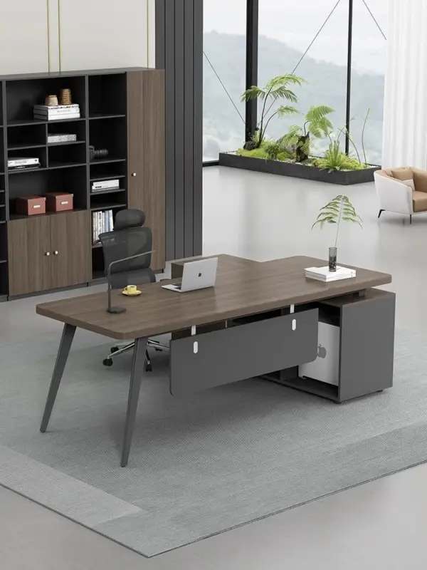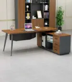 تصميم أنيق، انسيابي، يجمع بين صفاء الخشب وصلابة المعدن، ليمنحك مكتبًا يليق بمكانتك ، ويعكس ذوقك الرفيع في أدق التفاصيل.