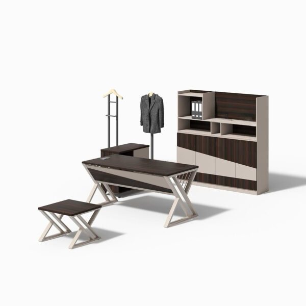 تصميم أنيق، انسيابي، يجمع بين صفاء الخشب وصلابة المعدن، ليمنحك مكتبًا يليق بمكانتك ، ويعكس ذوقك الرفيع في أدق التفاصيل.