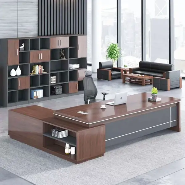هيكل المكتب مصنوع من خشب هندسي وخشب متين عالي الجودة لضمان الاستدامة والمتانة.