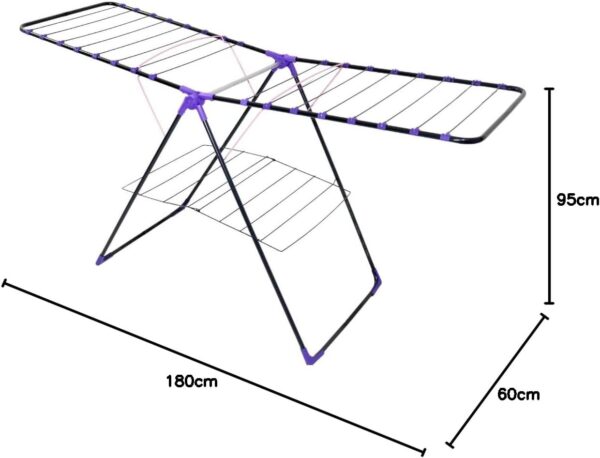 حامل الملابس القابل للطي هو الخيار المثالي لتجفيف الملابس في المنزل أو الحديقة، حيث يتميز بتصميمه القابل للطي الذي يسهل تخزينه بعد الاستخدام. مصنوع من المعدن الخفيف، هذا الحامل يجمع بين المتانة والراحة، مما يجعله مثاليًا للاستخدام اليومي.