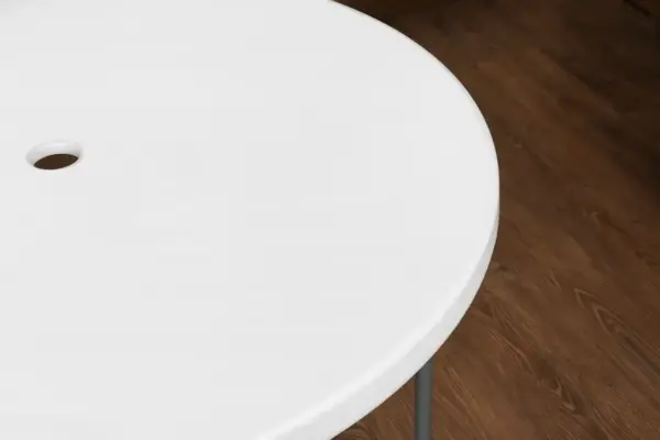 C 110 أبيض – ترابيزة دائرية 110 سم تجمع بين الجودة والمتانة والتصميم العملي والمريح كما تتميز بسطح متين مقاوم للأشعة فوق البنفسجية مما يجعلها مثالية للاستخدام الداخلي والخارجي سواء في المنزل أو الحديقة وتعد خيار مثالي للاستخدام في المساحات الكبيرة مثل القاعات والفنادق والمدارس والمكاتب بفضل قابليتها للطي ويمكن تخزينها بسهولة