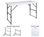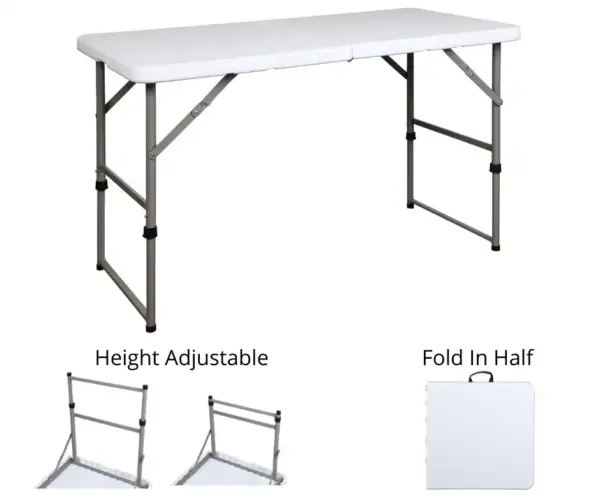 RF 122 أبيض – ترابيزة مستطيلة مطوية في نصف طاولة 122 سم (ارتفاع قابل للتعديل)